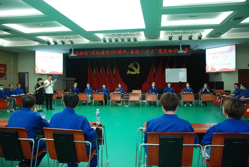 2022年7月1日,在建黨101周年的特殊日子里,公司黨群工作部組織的"慶祝建黨101周年、喜迎二十大”黨史新中國史、公司發(fā)展史知識競賽在多功能廳隆重舉行。公司黨委副書記梁敬斌、黨委委員、副總經(jīng)理侯國棟、副總經(jīng)理陳彥錦應(yīng)邀出席比賽現(xiàn)場。黨群工作部部長以及各黨支部書記擔(dān)任本次比賽的仲裁團(tuán),公司九支隊伍參加比賽,每支隊伍的選手都由兩名正式黨員和一名入黨積極分子組成。