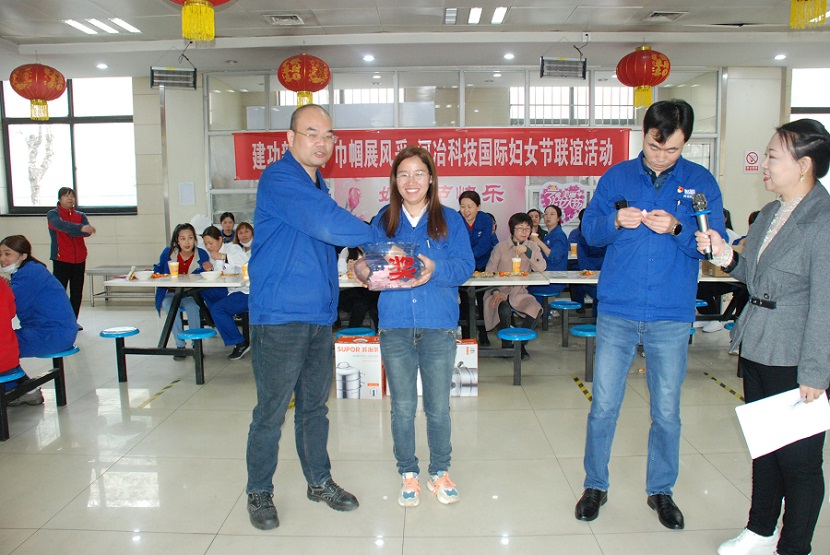 河冶住商的女工們歡聚在住商五樓多媒體大廳里,舉辦溫情茶話會(huì)---公司領(lǐng)導(dǎo)認(rèn)真聽(tīng)取女工意見(jiàn),當(dāng)場(chǎng)安排解決女工提出的各種問(wèn)題。趣味小游戲---“心有靈犀”、“盲人敲鼓”,參賽者真情演繹,逗得觀眾捧腹大笑,并通過(guò)三輪抽獎(jiǎng),抽取了6名幸運(yùn)女工。