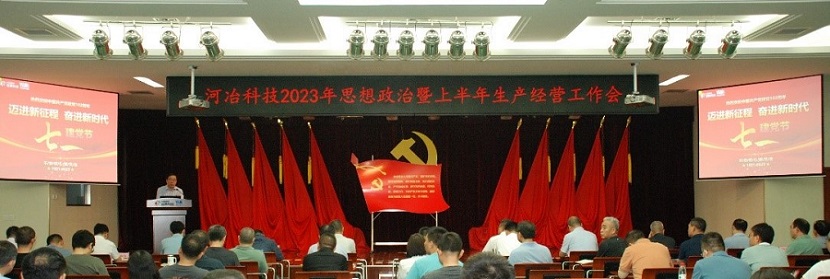 在建黨102周年之際,河冶科技2023年思想政治暨上半年生產(chǎn)經(jīng)營工作會于7月7日在公司多功能廳召開。參加會議的有公司黨委委員、經(jīng)理層、中層干部、黨支部書記、部門骨干、采購營銷人員、團委委員和子公司河冶住商黨總支委員及經(jīng)理層人員等共計130余人。會議由公司黨委副書記、常務副總經(jīng)理梁敬斌主持。